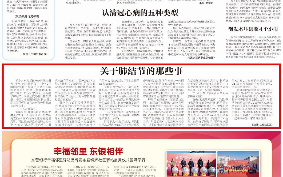 胜利日报《新生活周刊》见报:关于肺结节的那些事