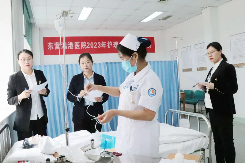 为庆祝第112个“5·12”国际护士节的到来,进一步在全院护理队伍中掀起学技能、练硬功的工作热潮,提高全院护理队伍整体技能水平,助力医院高质量发展,4月13日上午,东营鸿港医院举行2023年护理技能操作比赛,陈建邦院长、蒋振中副院长参加了启动仪式。