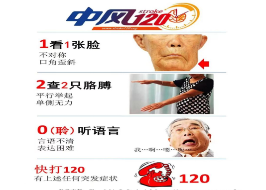 中风和小中风发作时症状相似,主要差别是程度不同,因此可根据“120”口诀,较为简便地识别是否出现小中风。